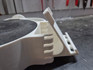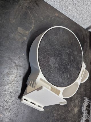 Supporto girevole per scanner 3D, in bianco e nero. È un pezzo in perfette condizioni, non è mai stato usato. Puoi regolare l'altezza del telefono cellulare e scattare foto automaticamente posizionando le cuffie cablate per iPhone direttamente all'interno dell'ingranaggio, che attiva la fotocamera dell'iPhone quando tocchi il tasto del volume sul controllo dell'auricolare. 20,5 cm di diametro