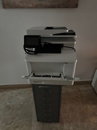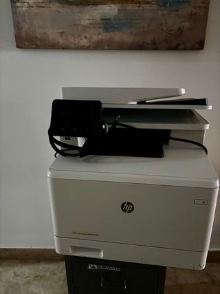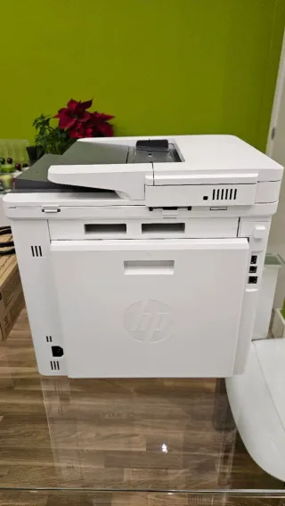 Stampante multifunzione HP Color LaserJet gestita MFP E47528 in grigio e bianco. Oltre al toner installato, abbiamo un toner originale nuovo. 100 € Stampante laser a colori e bianco e nero. Scanner. Fotocopiatrice. Fax. Connessione wifi, rete. Stampa anche tramite USB. Formati A4, A5 e buste. Stampa, scansione e copia fronte-retro con alta velocità. Perfetto per casa e ufficio.