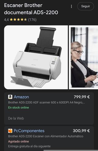Scanner Brother modello ADS-2600We in colore nero. - Connettività Wi-Fi. - Schermo touch a colori. - Scansione a PC, FTP, USB e rete (in formato jpg e PDF). Cavi di alimentazione e connessione inclusi. In perfetto stato e funziona perfettamente come mostrato nelle foto. Lo schermo è touch e a colori. È possibile scansionare a colori, in scala di grigi o in bianco e nero. Nuovo costa su Amazon quasi 700€ come si vede nell'ultima foto. Mancano le istruzioni e il CD dei driver, ma possono essere scaricati da internet senza problemi. Negoziabile ma ragionevolmente.
