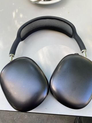 Cuffie ad archetto Apple AirPods Max in grigio siderale. Design elegante e materiali di alta qualità. - Finitura in alluminio anodizzato. - Fascia in mesh traspirante. - Cuscinetti in memory foam.