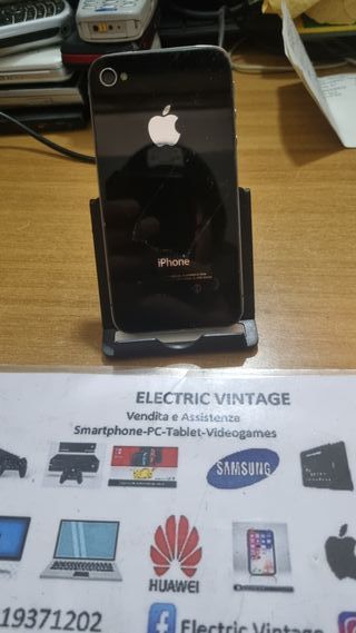9152N-Smartphone Apple iPhone 4 Telefono USATO FUNZIONANTE Aperto parte posteriore crepe su parte posteriore Sistema Operativo iOS 7.1.2 Batteria leggermente gonfia venduto senza alimentatore