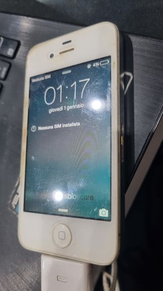 &9646N-Smartphone Apple iPhone 4 A1332 Telefono usato Da s.b.l.o.c.c.a.r.e. p.i.n. schermo Venduto senza alimentatore e Carrellino sim
