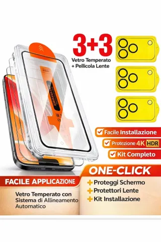 Set di 3 pellicole protettive per lo schermo e 3 protezioni per le lenti della fotocamera. - Vetro temperato ad alta resistenza. - Protezione 4K HDR per le lenti. - Facile installazione con sistema di allineamento automatico. - Kit completo per l'applicazione.