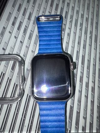 Smartwatch Apple Watch Serie 6 con cassa in acciaio inossidabile e cinturino blu; Cassa in ceramica•Cristallo zaffiro•GPS•LTE•WR 50m. Dimensione cassa 44 mm. Cinturino in pelle blu con chiusura magnetica. Cassa in acciaio inossidabile argentato. REGALO CUSTODIA VARIE CINTURINO E FONDE, vendo perché mi comprerò un altro modello poiché non è impermeabile e mi è utile per fare surf per il PICCOLO GOLPE dietro.