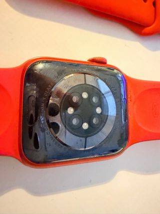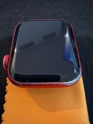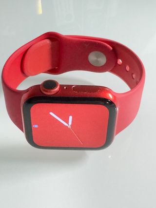 Smartwatch Apple Watch Series 6 in colore rosso. - Scatola in alluminio. - Il cinturino non è incluso. - Batteria appena sostituita al 100%. - Imballaggio originale. La vernice rossa è consumata su un lato come si vede nelle foto. Il resto è quasi perfetto dopo diversi anni di utilizzo.