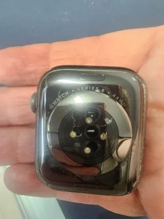 Apple Watch Series 6 da 44 mm. Nero, con confezione originale. In ottime condizioni. Funziona perfettamente. Include caricabatterie e cinturino. Ripristinato a nuovo.