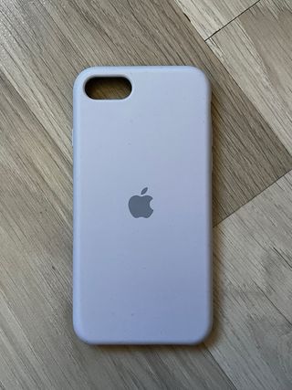 Custodia in silicone per iPhone SE, 6, 7 o 8. Ha un lato rotto ma funziona perfettamente. - Colore viola tenue. - Logo Apple in rilievo.