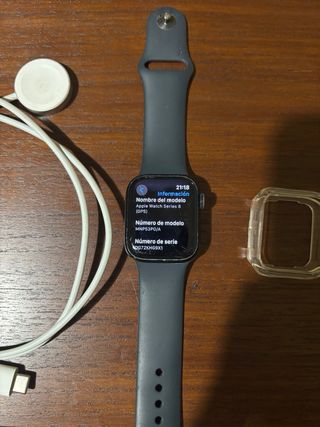 Vendo Apple Watch Series 8 45mm per cambio modello. Molto curato, funzionamento 10/10. ✅ DETTAGLI: Batteria: 87% di salute (regge perfettamente la giornata). Schermo e sensori: Perfetto, sempre con protezione. Stato: Molto buono. Solo piccole tracce di utilizzo all'interno, impercettibili quando indossato. Extra: Viene fornito resettato, senza blocchi e con caricabatterie. Ideale per il monitoraggio sportivo e della salute con elettrocardiogramma e sensore di temperatura. 📍 Consegna a mano o spedizione tramite Wallapop.