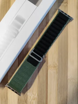 Cinturino nylon Alpine compatibile con Apple Watch ultra ,serie 11 10 9 8 7 6 5 4 , SE 3 2 1. Cinturino composto da doppio strato in tessuto nylon che lo rende morbido e comodo da indossare, delicato al polso. È dotato di gancio a G che inserito negli appositi occhielli ne consente la chiusura 💯 MODELLI COMPATIBILI ⌚44mm (Serie 6/5/4) (SE 3-2-1) ⌚45mm (Serie 9/8/7) ⌚46mm (Serie 11/10) ⌚49mm (Serie Ultra 3/2/1) ⌚Chiusura a gancio G ⌚Taglia M/L ⌚Materiale : Nylon ⌚Colore : Black - green CINTURINO FORNITO CON SCATOLA