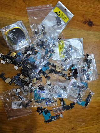 Lotto di vari componenti di ricambio per iPhone 6, 7 e 8. Principalmente dock di ricarica, ma presenti anche vari altri piccoli componenti.