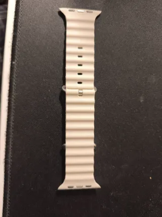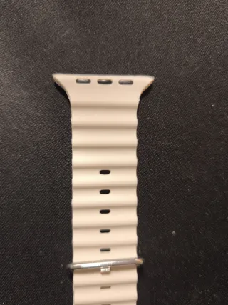 Nuovo, mai usato. Bracciale in silicone compatibile con Apple Watch Ultra. Design ondulato e chiusura con fibbia. Materiale: silicone. Colore: Bianco sporco. Chiusura: Fibbia in metallo.