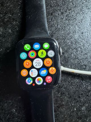 Smartwatch Apple Watch Series 6 da 44mm. Apple Watch Series 6 44mm Grigio Siderale con cassa in alluminio nero e cinturino sportivo GPS. Lo schermo presenta un piccolo graffio visibile in foto e dietro presenta segni d'uso. 78% di batteria. Scatola e accessori originali. Cinturino sportivo incluso. Prezzi negoziabili. - Cassa in alluminio grigio siderale. - Cinturino sportivo nero.