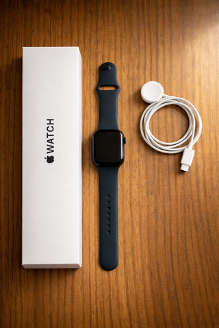 Apple Watch Series 9 in colore midnight. Modello da 45mm con connettività cellulare. - Scatola originale. - Cinturino originale. - Cavo di ricarica magnetico originale. - Batteria al 100%.