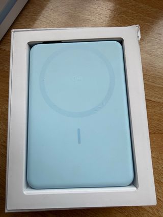Batteria esterna Apple in colore blu, con design MagSafe. Carica wireless. Design compatto e leggero.