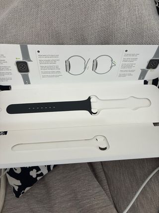 Da 45 mm in perfetto stato, senza alcun graffio. Batteria al 97%. Sempre con protezioni per lo schermo e la cassa. Colore argento. Include tutti gli accessori e la scatola originale.