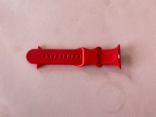Cinturino di ricambio per Apple Watch. - Compatibile con modelli da 42, 44 e 45 mm. - Colore rosso vivace. - Materiale in silicone flessibile.