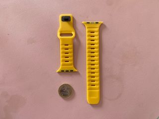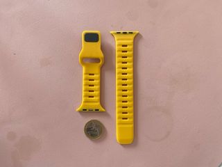 Cinturino di ricambio per Apple Watch da 44mm, colore giallo. - Materiale in silicone flessibile. - Design con fori per traspirabilità. - Chiusura a perno.