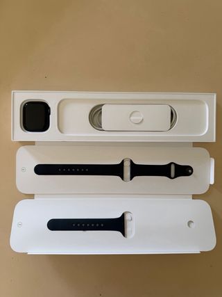 Vendo Apple Watch Serie 9 da 41mm colore nero per passaggio a un altro orologio. L'orologio è perfettamente funzionante e utilizzato sempre con cura. Presenta solo piccoli segni di usura dovuti al normale utilizzo quotidiano, puramente estetici. Per il resto è perfetto, come da foto. Nella vendita sono inclusi: • Apple Watch Series 9 41mm nero • Cinturino Nike originale in tessuto con chiusura a scratch • 4 cinturini non originali • Cover e vetrino protettivo non originali • Confezioni originali complete • Caricatore originale Apple Tutto è perfettamente funzionante e pronto all'uso. Per qualunque informazione contattatemi.