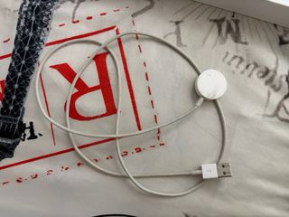 Apple Watch Serie 3 con cinturino bianco e cassa nera. Caricabatterie originale. Qualche segno di usura PERFETTAMENTE FUNZIONANTE PREZZO NON TRATTABILE NO PERDITEMPO