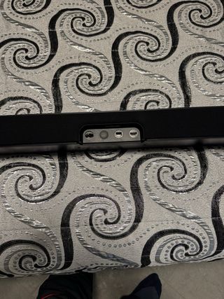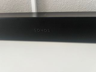 Barra sonora Sonos in colore nero e argento. Un elegante complemento per il tuo sistema audio. Design moderno e discreto. Finitura in nero opaco con dettagli in argento.
