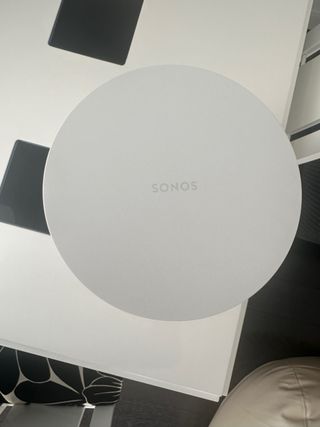 Altoparlante portatile Sonos Roam 2 in bianco. Include kit di ricarica wireless. Design compatto e leggero. Suono potente e avvolgente. Batteria ricaricabile a lunga durata. Il cavo si è leggermente staccato dalla presa di carica, ma tutto funziona perfettamente.