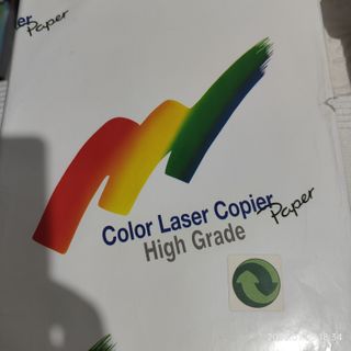 Carta bianca di alta qualità Canon per stampanti laser e fotocopiatrici a colori. Formato A4. Peso: 105 gsm. Confezione da 500 fogli, ma mancano circa 15 fogli.