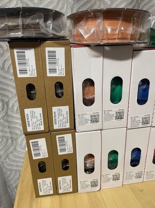 Rotolo di filamento per stampanti 3D a 12€ per rotolo da un chilo. Il prezzo è per una sola unità di rotolo da un chilo. Unità limitate. Marca: Kingroon e Geeetech. Protetto in una scatola con sacchetto di silice. Diametro: 1,75 mm. Materiale: PLA. Colori: Nero, Bianco, Grigio, Marrone chiaro, Marrone cioccolato, Giallo, Arancione, Rosso, Blu, Verde. Temperatura letto: 50-70 °C. Temperatura ugello: 190-210 °C. Non tossico. Facile da usare. Consegna in mano o spedizione disponibile. Prezzo non negoziabile.