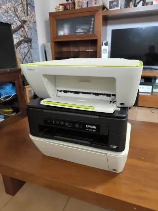 In vendita lotto di tre stampanti, combinando modelli di HP ed Epson. Include stampanti di diverse marche. Combinazione di colori bianco, verde e nero. A tutte manca l'inchiostro, non posso garantire il loro funzionamento, quindi si vendono per pezzi o riparazione.