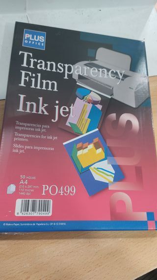 Scatola di fogli trasparenti per stampanti a getto d'inchiostro. - Formato A4 (210 x 297 mm). - Spessore di 110 micron. - Risoluzione di 1440 dpi. - Contiene 50 fogli.