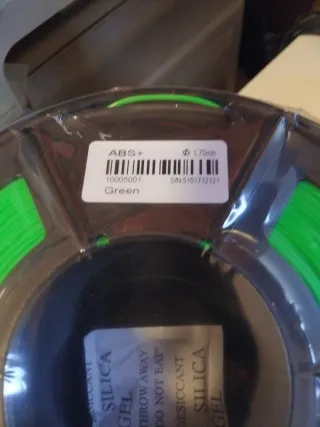 Bobina sigillata ABS+ verde 1,75 mm. 1 kg. Bobina Sakata quasi piena, 1,75 mm, 1 kg gialla.