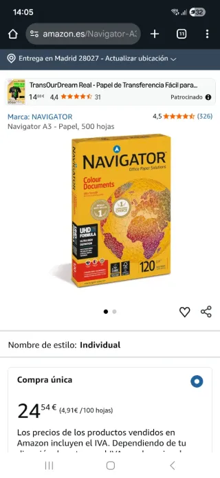 Pacchetto di fogli A3 del marchio Navigator, con una gramatura di 90 grammi. Ho acquistato questo pacchetto l'anno scorso e ho usato solo pochi fogli (meno di 20) perché pensavo mi servissero per il mio lavoro, ma alla fine non mi sono stati utili. Il pacchetto ha gli angoli rotti, ma i fogli sono intatti (verificabile di persona). Non ricordo il prezzo di acquisto, ma l'ho visto su Amazon a 25 euro. Accetto offerte realistiche.