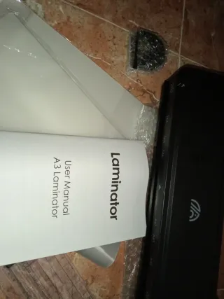 Laminatrice A3 di colore nero. Include manuale utente. Fornita con fogli per plastificazione.