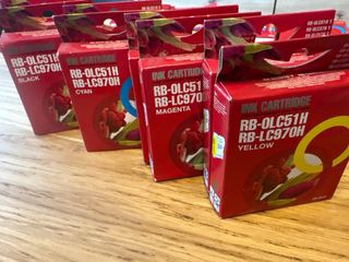 Confezione da 4 cartucce d'inchiostro per stampanti Brother. - 1 cartuccia nera (RB-LC424BK) da 16ml. - 1 cartuccia ciano (RB-LC424C) da 8ml. - 1 cartuccia gialla (RB-LC424Y) da 8ml. - 1 cartuccia magenta (RB-LC424M) da 8ml. Compatibili con Brother DCP-J1200W e DCP-J1300W.