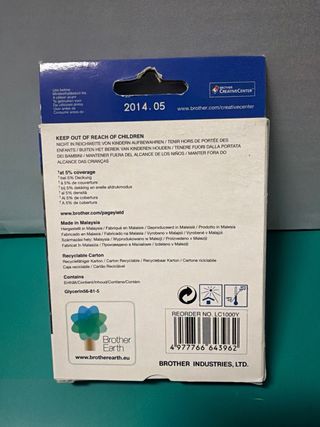 Cartuccia d'inchiostro originale Brother LC-1000Y di colore giallo. - Modello: LC1000Y - Colore: Giallo - Compatibile con diverse stampanti Brother, tra cui DCP e MFC.