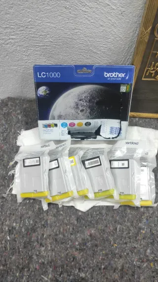 Confezione da 4 cartucce d'inchiostro originali Brother LC1000. Include i colori: Ciano, Magenta, Giallo e Nero. Compatibile con vari modelli di stampanti Brother.