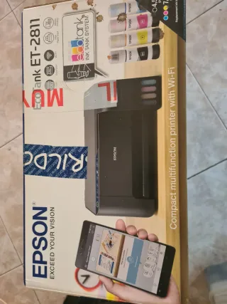 Stampante multifunzione Epson EcoTank ET-2811, ideale per la sublimazione. In condizioni nuove e prezzo negoziabile. Colore nero. Sistema di serbatoio inchiostro EcoTank. Connettività Wi-Fi. Scansione e copia. Alimentazione di carta posteriore.