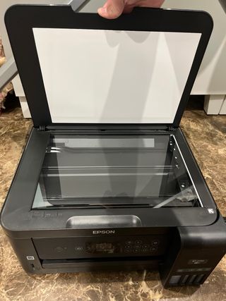 Stampante Epson Ecotank ET-1810. Acquistata a dicembre. Ho la ricevuta de El Corte Inglés. Funziona PERFETTO. Viene con la sua scatola originale