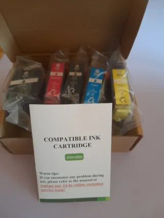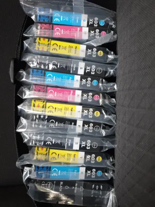 Set di cartucce per stampante, nuove e sigillate. - Colori misti (nero, magenta, ciano, giallo). - Compatibili con diversi modelli di stampanti (verificare codici). - Imballaggio originale.