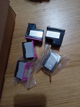 Cartucce d'inchiostro per stampante, compatibili solo con le stampanti fotografiche. Due sono aperte, ma con inchiostro.