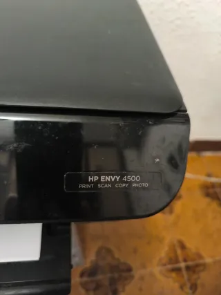 Stampante e scanner HP Envy 4500 a colori in nero. Consente di stampare, scansionare e copiare in bianco e nero e a colori. Anche a doppia faccia automaticamente. Connessione wireless tramite Wi-Fi, per stampare direttamente da smartphone e computer senza cavi. Dimensioni (nelle parti più larghe): 44x33x15cm. Attualmente ha cartucce con inchiostro, ma sono asciutte per due anni senza utilizzo. Consegna a mano a Rivas o a Mar de Cristal.