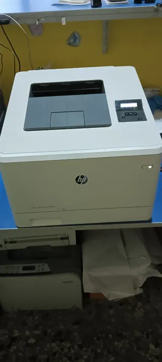 Stampante laser a colori HP Color LaserJet M452dn, ideale per l'ufficio con difetto. Quando rimane molto tempo spenta quando viene riaccesa dagli errori che si vedono in foto, dopo vari tentativi la stampante funziona perfettamente. - Stampa fronte/retro automatica. - Connettività di rete. - Display LCD.