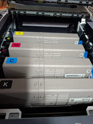 Stampante laser a colori Canon i-SENSYS LBP633Cdw. - Stampa tramite Wi-Fi e USB. - Stampa fronte/retro automatica. - Cartucce toner magenta e nero, ogni cartuccia per 1500 fogli. - Possibilità di cartuccia bianca venduta separatamente. In vendita per cambio, acquistata a febbraio 2025 (fattura disponibile). Poco utilizzata. Si accettano offerte. Preferibile consegna a mano a Valladolid-Salamanca. Si trova in un paese di Avila.