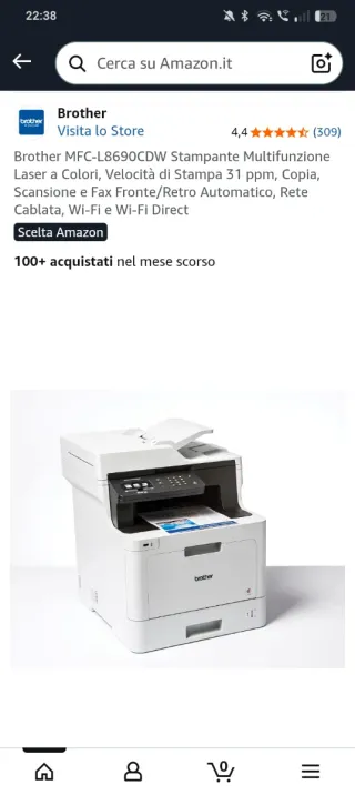 Vendo stampante Brother HL-3210CW laser a colori con WiFi, in ottime condizioni e poco usata. Contatore: 3.501 copie. Specifiche: • Tecnologia: laser a colori • Stampa: a colori e bianco e nero • WiFi e USB • Velocità: fino a 18 ppm • Risoluzione: fino a 2.400 x 600 dpi • Vassoio carta frontale • Ideale per casa o ufficio ✔ Funziona perfettamente ✔ Ben curata ✔ Con imballo originale ✔ Possibile prova ✖ Si vende senza toner (prezzo adeguato 📏 Dimensioni della stampante (senza imballo): Larghezza: 410 mm Profondità: 461 mm Altezza: 252 mm Peso: ≈ 17,2 kg Unico difetto nell'ultima foto: esposizione al sole in una zona.
