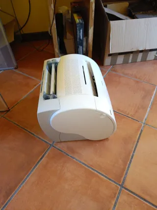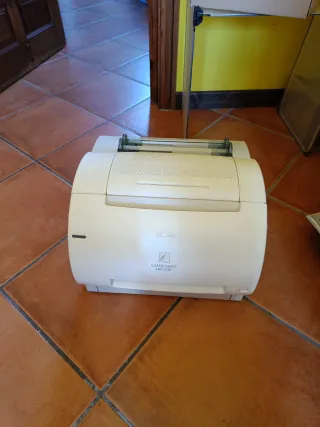 Stampante laser Canon a colori bianco. Modello: Laser Shot LBP-1120. Tecnologia laser.
