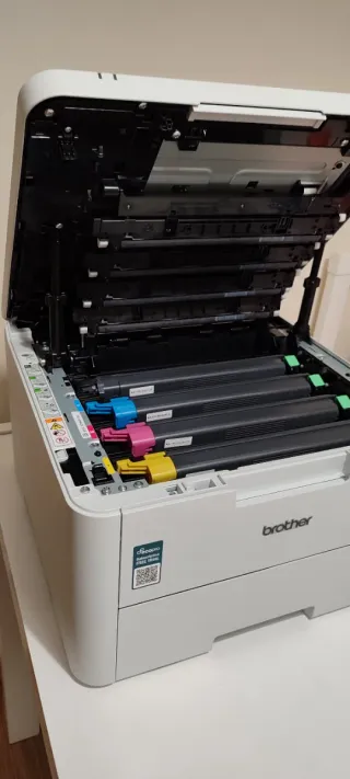 Stampante laser Brother HL-3220CWE. Quasi nuova. L'ho acquistata per errore pensando fosse a getto d'inchiostro. Tamburi nuovi. Toner nuovi Nero, Magenta, Ciano e Giallo. Completamente funzionante e in ottime condizioni. Modello HL-3220CWE. Stampa a colori, ha il wifi. Conservo la scatola, anche se il cartone è un po' rotto.
