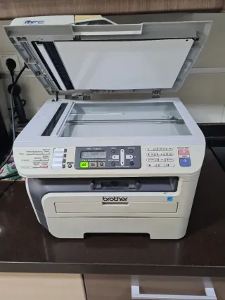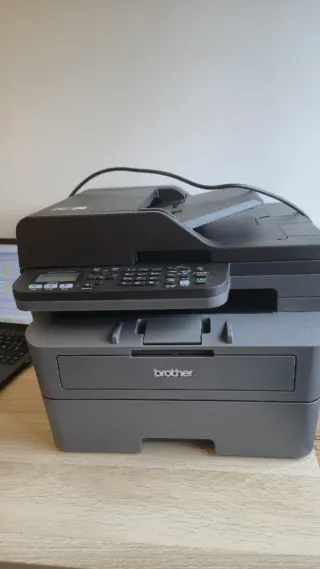 Stampante laser multifunzione bianco e nero. Stampa e copia fronte-retro. Connessione USB e Wi-Fi. Usato ma funziona bene e la qualità di stampa è buona. Funzioni di stampa, scansione, copia e fax. Vassoio carta frontale per 250 fogli. Inserimento manuale frontale. Alimentatore automatico documenti. Scanner a colori. Ideale per piccole imprese, rapida e costi economici dei consumabili generici. Incluso un cartuccia toner compatibile versione TN2420. Spedizione disponibile. Per qualsiasi domanda, chiedi.
