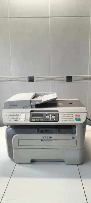 Stampante laser multifunzione Ricoh SP1200 sf. È in ottime condizioni, curata e funziona perfettamente. - Stampe monocromatiche (nero e bianco). - Ideale per case di studenti e uffici che necessitano di stampare a basso costo. - Stampa, scansione e copia. - Alimentatore automatico. - Il tamburo è all'88% della sua durata. - Il toner è un po' basso ma i ricambi sono tra i più economici del mercato. - Queste macchine sono progettate per resistere a più di 50.000 copie e ne ha stampate solo 16.300. - Incluso il cavo di alimentazione.
