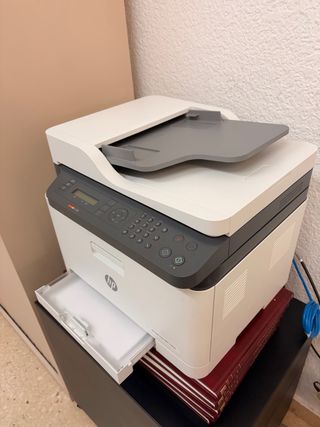 Stampante HP Color Laser 150nw. Ben conservata. Risoluzione fino a 600 x 600 dpi. USB 2.0, Wi-Fi ed Ethernet (LAN). Compatibile con stampa mobile (HP Smart App, Apple AirPrint, Google Cloud Print). Compatibile con Windows e macOS. Configurazione di fabbrica. Firmware aggiornato. Include toner (vedere le foto per i livelli). Da sostituire il toner giallo. Disponibile una confezione di toner nero 117A W2070A nuovo (venduto separatamente, ma può essere incluso nel pacchetto). IMPORTANTE: Venduto perché stampa qualcosa di sporco (vedere le foto). Probabilmente si può pulire o con un nuovo toner non succederà, ma lo vendiamo per non poter investire tempo.