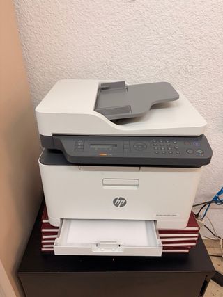 Stampante HP laser multifunzione 178nw in colore grigio e bianco. In ottime condizioni, come nuova. Viene fornita senza cartucce. - Multifunzione: stampa, copia e scansiona. - Connettività: Wi-Fi e rete Ethernet.