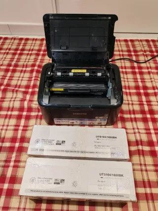 Stampante laser monocromatica Samsung con connessione Wi-Fi. Configurazione Wi-Fi One Touch. Design ultra compatto. Velocità di stampa 18/19 ppm (A4/Ltr.). Connessione Wi-Fi Certified. Poco uso, attualmente ha il toner, non so quanto sia la capacità. Supporta toner compatibili.